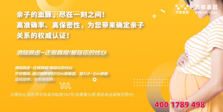 华容dna胎儿亲子鉴定办理地址:岳阳市华容县华鲇路542号(如需要办理 提前电话或微信预约)-预约电话:4001789498,华容服务地区包括:岳阳楼区、云溪区、君山区、岳阳县、华容县、湘阴县、平江县、汨罗市、临湘市等周边城市华容,可在线咨询:dna胎儿亲子鉴定、司法亲子鉴定、移民亲子鉴定、入户亲子鉴定、中考报告亲子鉴定、高考亲子鉴定、个人隐私亲子鉴定等等咨询服务和提供专业知识及答复。